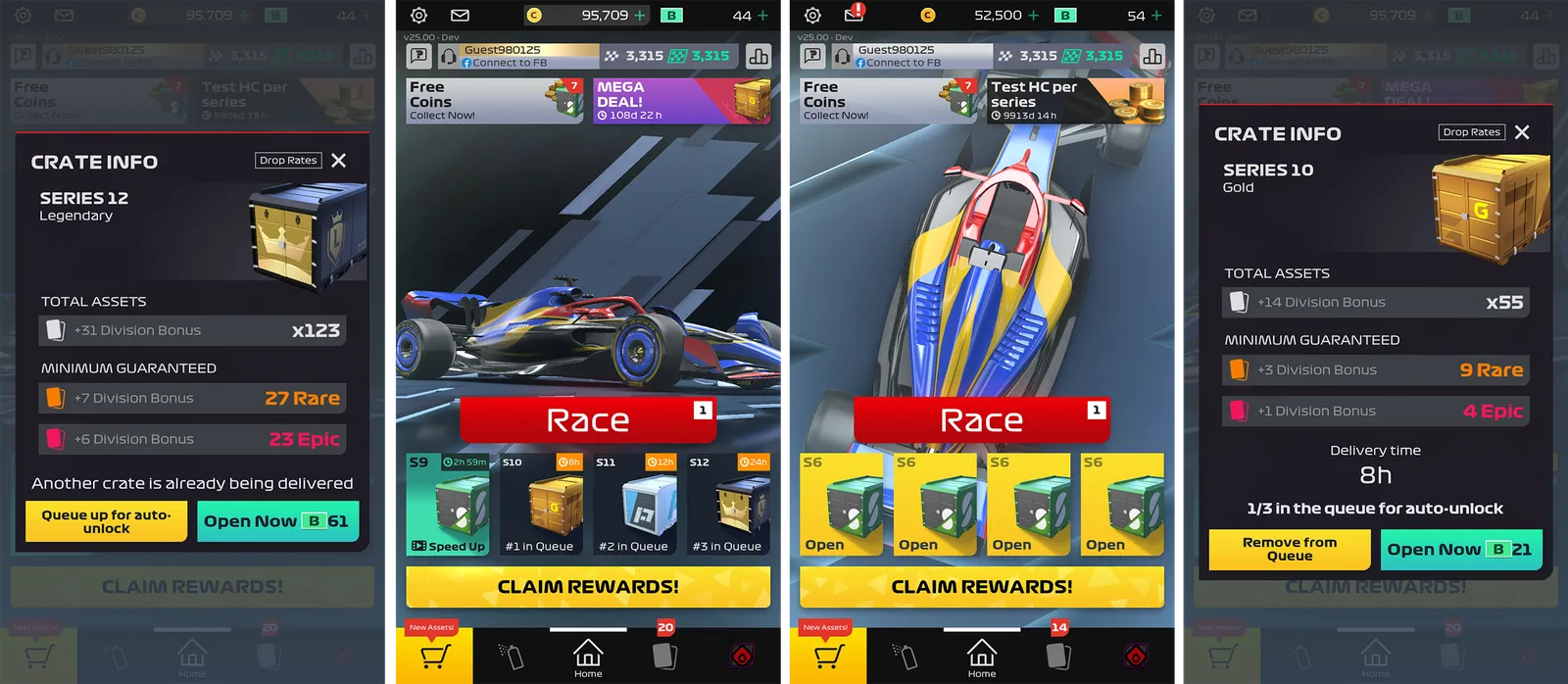 One of the benefits of buying the Premium Pit Pass is being able to queue Crates for auto-unlock without needing to be online. This way, you can open multiple Crates with just one interaction and will have all your rewards waiting for you the next time you log in.