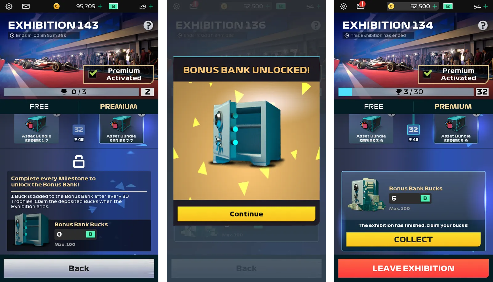 Bonus Bank is an extra, optional Pit Pass reward after you complete every milestone. From this point on, collecting Trophies will reward you with Bucks deposited to the Bonus Bank, and you can claim the deposit when the Exhibition ends.