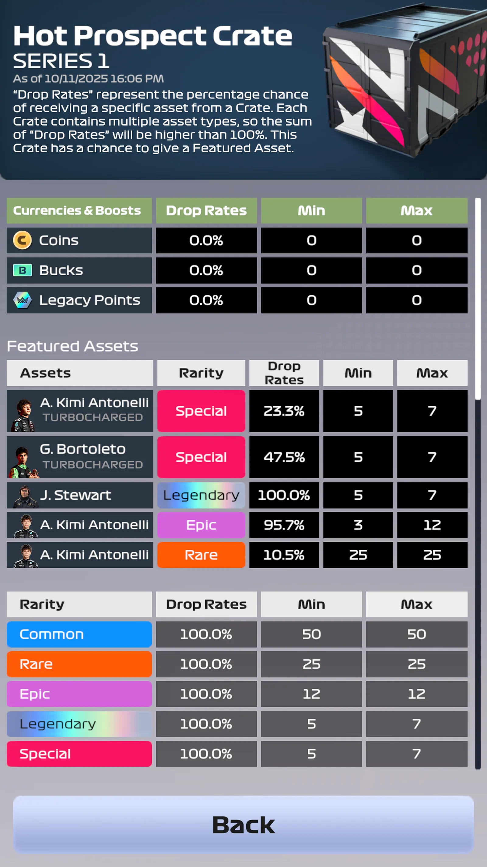 The Special Edition cards can be obtained through a variety of methods, similar to other Driver cards throughout F1 Clash. Each individual collection that is available from sources such as Crates will display their specific variety drop rates accordingly.