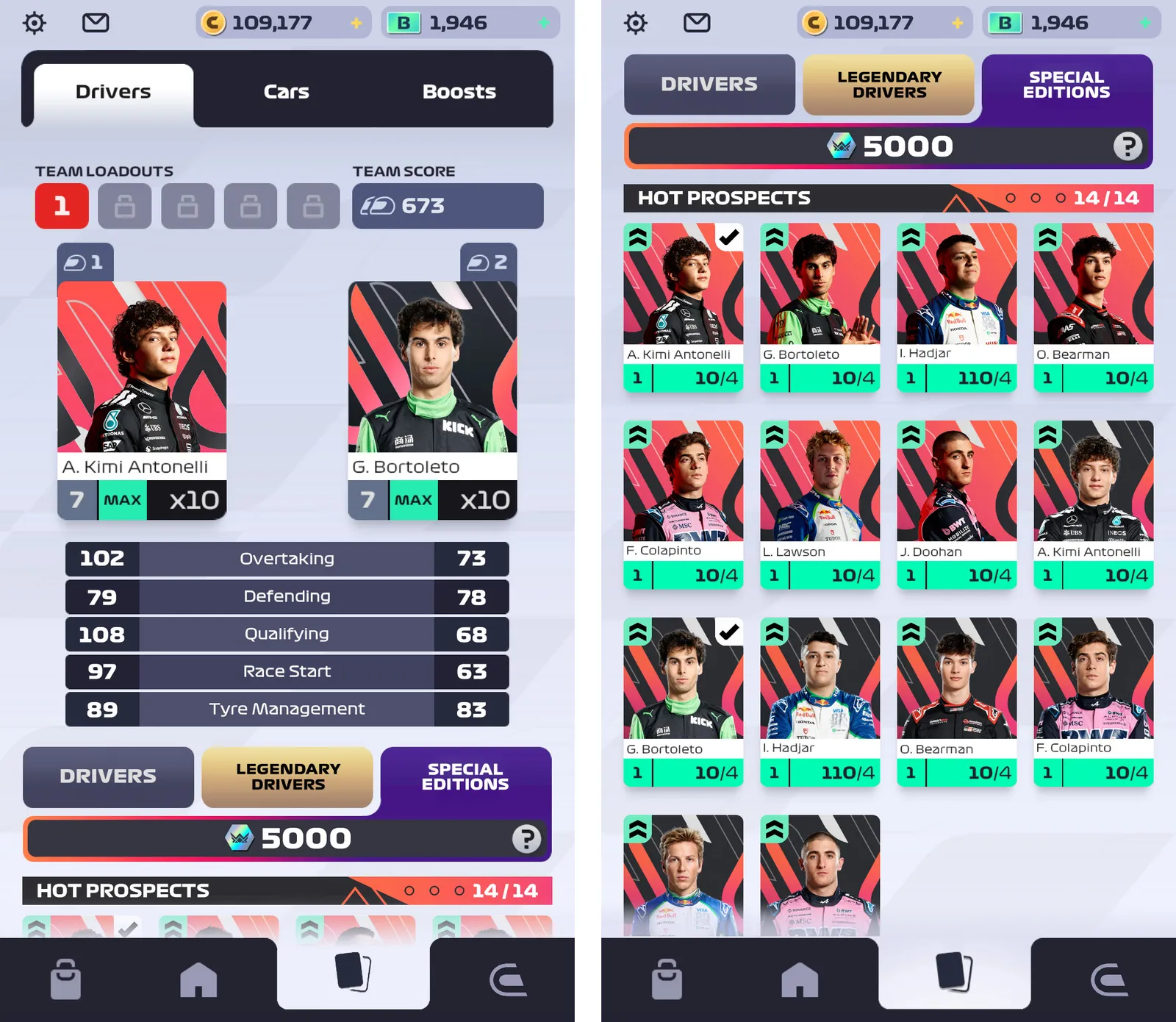 Special Editions will introduce a new, dedicated section within the Driver asset screen. Each unique collection will be displayed here allowing Players to compare their individual strengths to utilise.