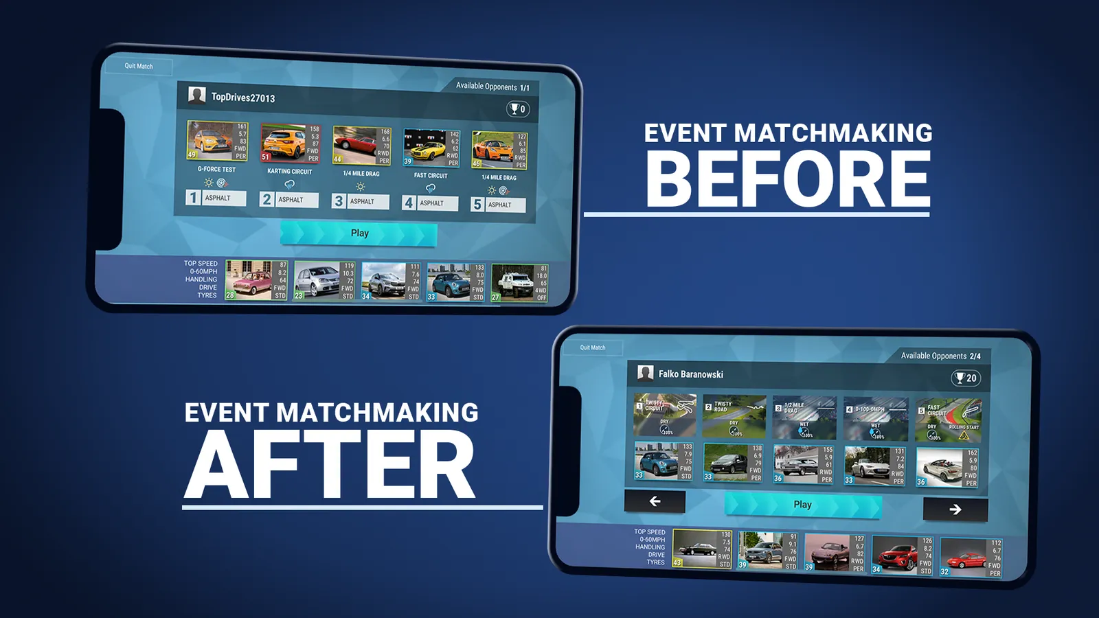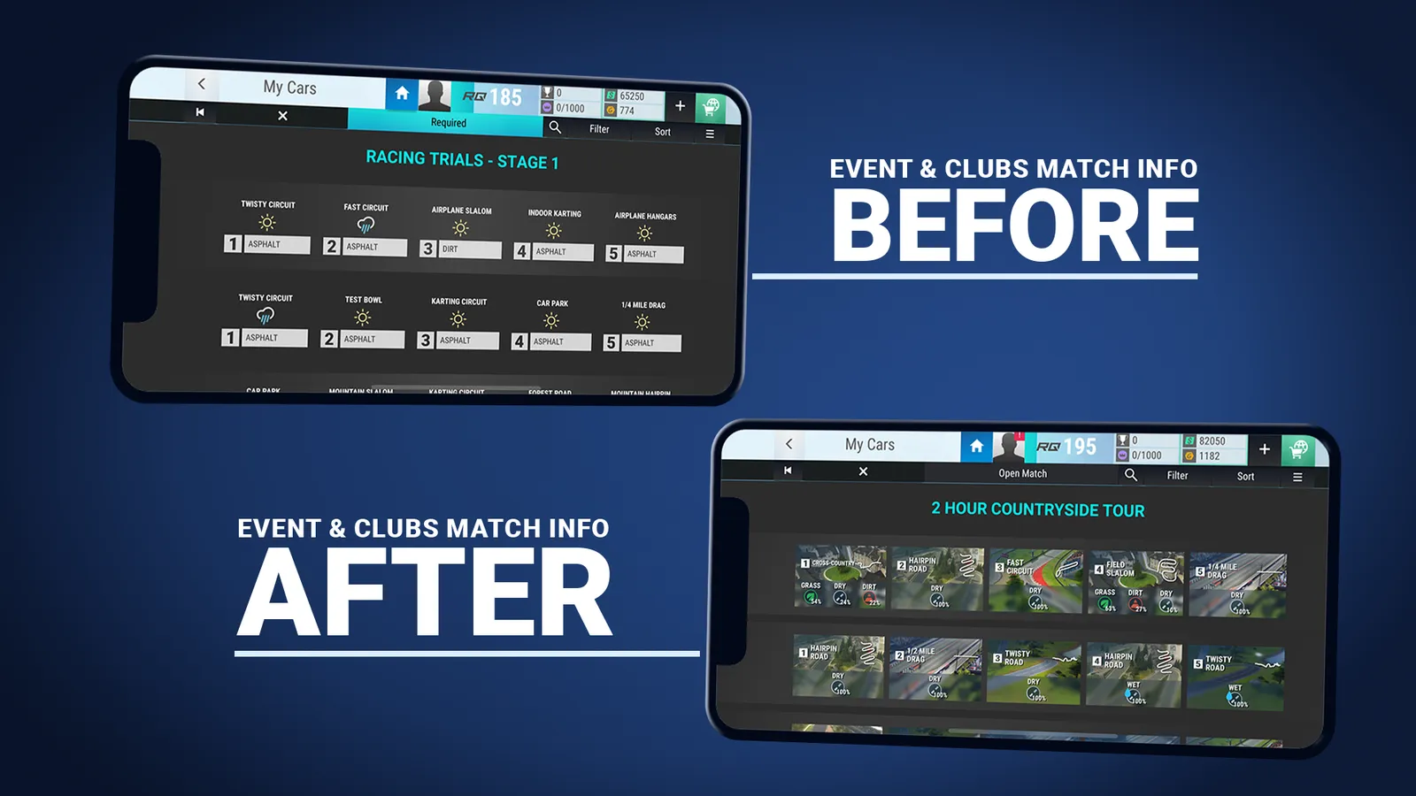 Upgraded Matchmaking - Opponent matchmaking screens in Events and Clubs have been refreshed with the new visuals too.
