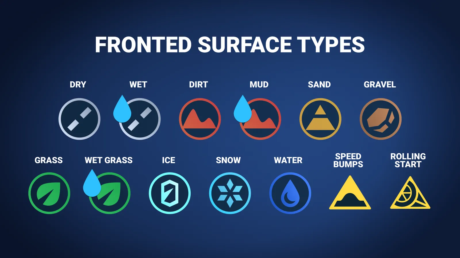 Surface & Hazard Icons - A brand-new set of icons shows exactly what surfaces and conditions you’ll be racing on from tarmac to snow, dry to rainy.