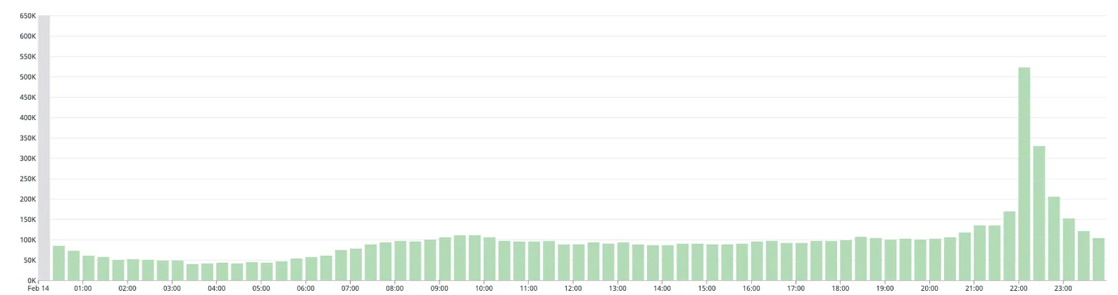 Now, let’s compare it to this traffic pattern for a day on Top Drives where an event is ending at a specific time: