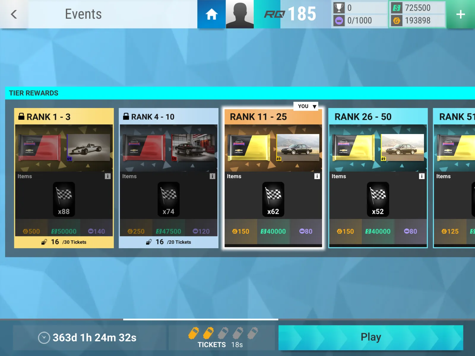 We've updated and modernised the UI screen that shows tiered prizes for Events. The improvements made are as follows: